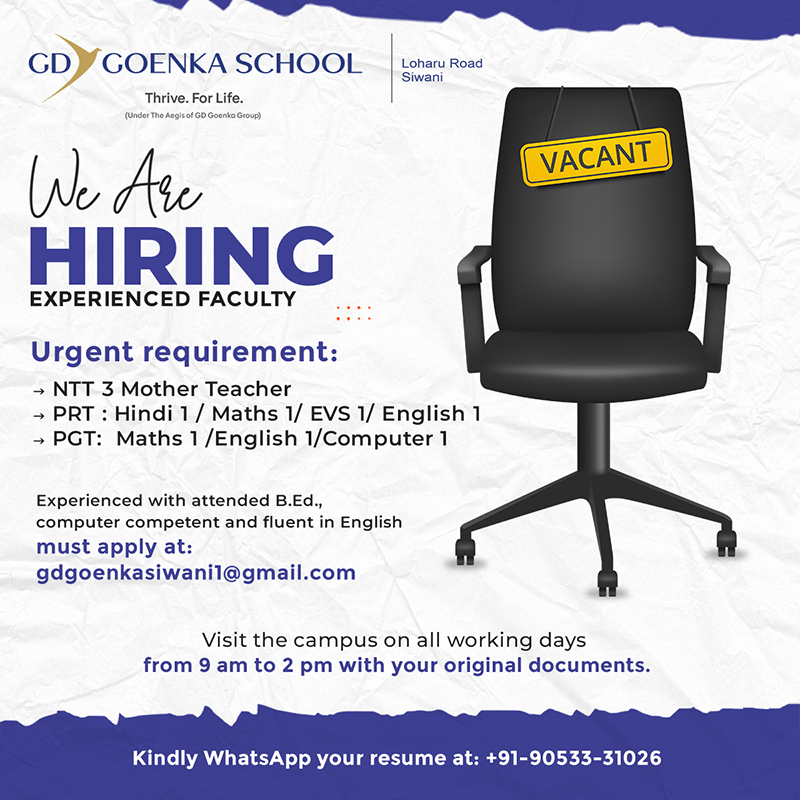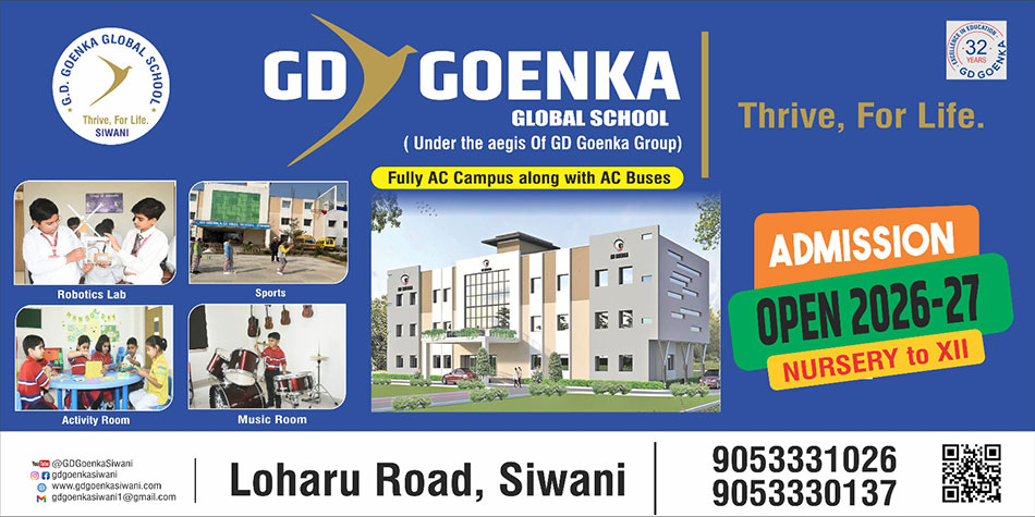 Excellent education lays the foundation for personal success, national progress, and global advancement. The G.D. Goenka School, Siwani has worked to create the best conditions for achieving these goals; highly motivated pupils, an outstanding faculty, and superior infrastructure.